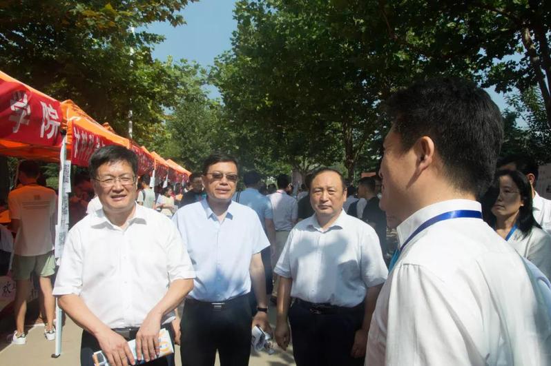 迎新工作中,校领导和院领导分别到迎新现场视察,关心2019级新生入学报到情况,亲切的与新生及家长交流。