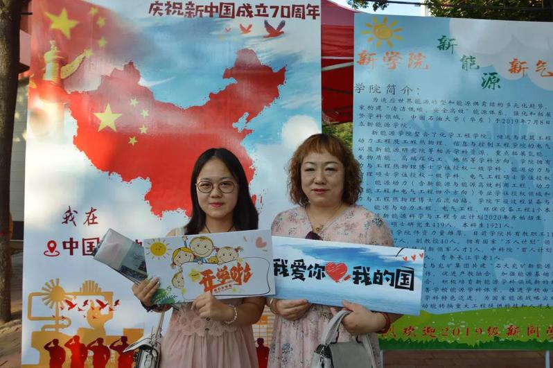 今年恰逢新中国成立70周年,迎新点设有特色主题展板,新生可以在报到后参加向祖国表白的拍摄活动,共同筑梦新的家园,并留下难忘的精彩瞬间。学院简介展板内容丰富,各个专业的专业介绍、师资队伍、仪器设备、就业前景等等,让新生及家长更快、更多的了解学院及所学专业。