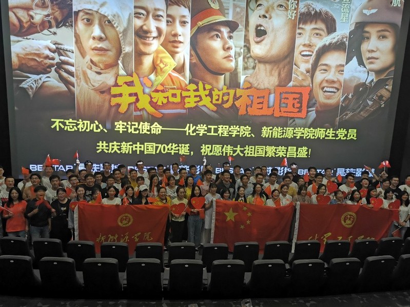 为隆重庆祝中华人民共和国成立70周年,弘扬爱国主义精神,结合学校“不忘初心、牢记使命”主题教育工作安排,增强广大师生党员的光荣感和使命感,引领其以更饱满的热情投入到工作学习中去,9月30日下午,太阳集团城娱8722、化学工程学院党委组织90余名师生党员集中统一观看大型电影《我和我的祖国》。