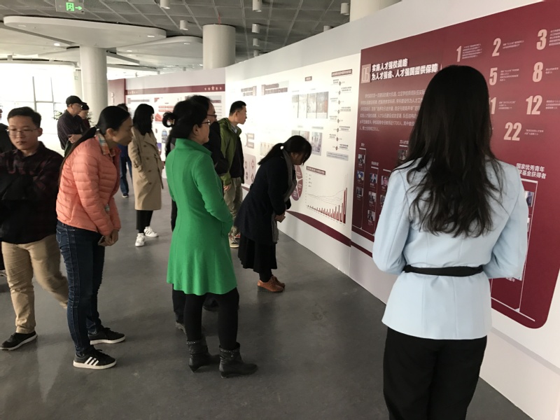 在讲解员的引导下,教工党员从北京石油学院的大门走起,认真聆听石大故事,66年来,石油大学和古老而又年轻的中国携手并肩,一路前行。在学校发展的图片前,老师们深情地回忆起在东营校区的峥嵘岁月,在艰苦的条件下,老师们克服重重困难,取得了令人骄傲的业绩,培养了一大批优秀石油人才,包括中国科学院院士、中国工程院院士、中石油、中石化等国有大型企业领导、专家教授等在内的一大批杰出人才。在1953-1966年重大科研成果前,徐明海教授、杨德伟教授等深切缅怀获得国家技术发明一等奖的张英、任瑛教授,原来,他们是任瑛教授的嫡传弟子!老前辈为我们做出了表率,我们必须得更加努力工作!大家边看展览边情不自禁地交流体会和感慨。