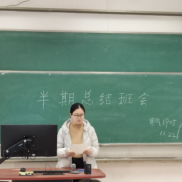 在此次总结会中的开始,班长伍烊进向全体同学阐述了本次期中考试全校的情况,分析了本次期中考试电气1905的总体情况,鼓励全体同学努力适应大学的学习模式。学习委员武璐琛和高等数学课代表张皓天具体分析了学生的日常表现和考试情况,并向全体同学阐述了后半学期的班级学习计划。