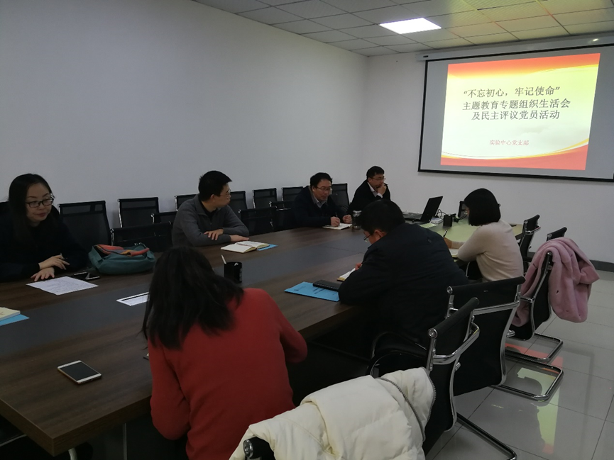 2019年12月17日上午,太阳集团城娱8722实验中心党支部在特种楼C431会议室召开“不忘初心、牢记使命”主题教育专题组织生活会和民主评议党员活动。会议由党支部书记王丽飞同志主持,黄善波副院长列席会议。