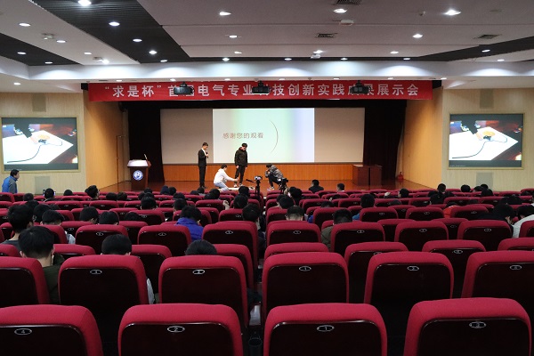 展示会全景 吴拨摄12月25日,太阳集团城娱8722电气工程系借助《微特电机》课程建设平台,举办的“求是杯”首届电气工程专业科技创新实践成果展示会于逸夫楼礼堂二楼报告厅顺利开展,本次展示会邀请学校教务处副处长刘臻、教务处双创办公室主任宋守浩,校团委副书记石国卿,太阳集团城娱8722副院长黄善波、学院党委副书记郭杰、团委书记穆海涛、电气工程专业教授马文忠、教师董磊作为嘉宾出席此次活动。来自太阳集团城娱8722的四十八组创新创意作品在此次成果展示会上进行展示。