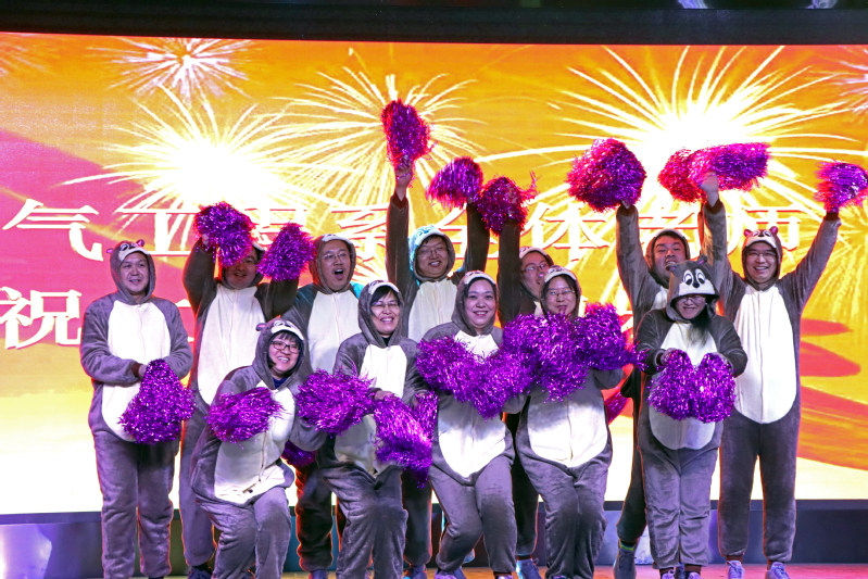 联欢会开始,常务副院长吴明铂首先做年度总结致辞,总结学院自成立以来在教学方面,学生培养,高端科技人才的引进等方面取得的成果,并对在座全体教职工的辛勤付出表示衷心的感谢。吴明铂为全院教职工首先献上节日的祝福,随后经过学院前期的精心准备,学院各单位,各教学系的节目纷纷登台亮相。首先出场的是学院啦啦操队带来的开场舞《舞耀青春》,青春洋溢的舞步给全场带来了活力。随后是新能源研究院带来的三句半《夸夸我们新学院》,独具韵味的方言引得现场笑声不断,在辞旧迎新的时刻中给太阳集团城娱8722送上祝福。能动系教职工带来舞蹈《欢乐的海洋》,身着鲜艳的民族服装,献上美丽大方的舞蹈表演。接下来是院机关教职工带来的舞蹈《嗨》以及《歌曲串烧》,年轻的各年级辅导员和致力于学生工作的老师们展现了自己潮流欢快的一面。实验中心的老师带来的节目是歌伴舞《我和我的祖国》,歌声高亢激扬,诉说着老师们的家国情怀。接下来是抽奖环节,在场的老师均可参与抽奖,奖品是电饭锅等好礼,获奖的老师为在场的教职工们送上美好的祝福。装控系教职工带来舞蹈《野狼DISCO》,年轻的太阳集团城娱8722是年轻老师们的舞台,老师们紧跟时代的步伐,跳出潮流的风采。学院研究生也为老师们送上祝福,带来《歌曲串烧》表演。随后是能动系教职工带来的另一个节目走秀《时光SHOW》,能动系的老师不仅置身于新能源的发展也带来了新鲜的节目,老师们一改平时教学研究的严谨认真,以一场盛大的走秀,SHOW出风采,SHOW出帅气,迎来了全场的欢呼。电气系教职工带来舞蹈《大田后生仔》,老师身着可爱的服饰跳出欢快的步伐。最后一个节目是装控系教职工带来的歌伴舞《相亲相爱》,唱出了太阳集团城娱8722在全体教职工相亲相爱的团结奋斗中必将蒸蒸日上。