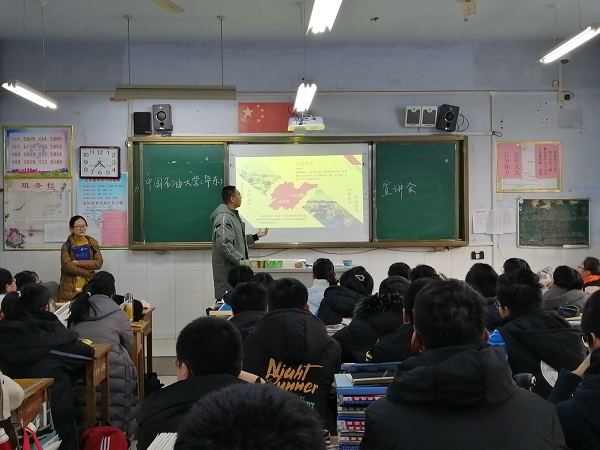 1月15日,我院UPC莱芜星火宣讲队队长田鸽,队员董懿琛、朱晨雨、吴佳怡、张天宇等分别于济南市莱芜第一中学,济南市莱芜区凤城高级中学,济南市莱芜第十七中学三所学校展开宣讲工作。