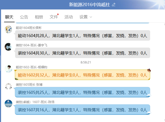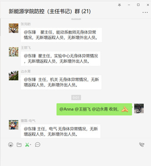 自疫情发生以来,学院对疫情防护高度重视,针对湖北籍学生、寒假留校学生等特殊学生群体建档立卡、特别关注。为留校学生提供水果、牛奶等物资满足学生生活需要,保障学生身体健康。通过电话及网络逐个联系湖北籍学生,确认学生身体状况,叮嘱学生居家隔离、做好防护;各个年级实行零汇报制度,建立“学生-班级-年级-学院”四级汇报制度,及时掌握学生情况,加强心理疏导,及时上报并跟踪特殊身体情况学生。学院教职工实行零汇报,确保及时掌握教师行踪及身体情况。