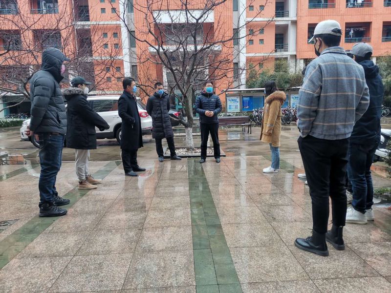 冯宝鹏给同学们讲解了当前疫情防控的严峻形势,勉励留校同学们务必做好自我保护,同时要求大家一如既往的按照学校、学院统一部署,服从管理,不放松、不泄劲,克服困难,坚定信心,共同努力战胜疫情。吴明铂详细询问了同学们在校学习、生活和就业情况,叮嘱大家要保持良好的作息生活习惯,在做好日常防护的基础上,充分利用好时间认真学习;要经常通过网络与父母、老师和朋友们加强联系,并仔细询问了同学们学习生活中存在的困难。慰问中了解到在校的2016级环保设备工程专业丁文豪同学因电脑故障无法进行毕业设计,学院领导立即现场办公给学生提供一台电脑,保证学生顺利进行毕业设计;能动2017研究生伍慧喜还询问了研究生毕业论文提交时间等相关问题,吴明铂做了详细解答。