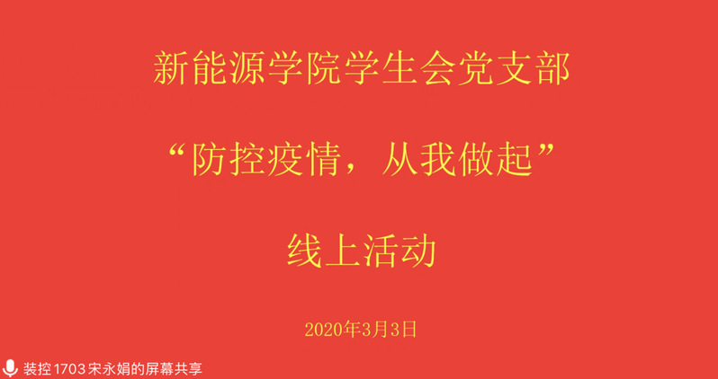 活动伊始,宋永娟首先介绍活动主题,通过问卷系统分享疫情防控问答问题,支部成员轮流作答,相互交流做题方法以及自我防护相关知识小技巧,引导支部成员正确认识新冠病毒,在生活中做好疫情防控相关工作。活动中同时强调,疫情防控形势仍然严峻,支部成员应该增强防控意识;同时在特殊时期,党员应充分发挥党员先锋模范作用,在疫情上报、在线学习、志愿服务等方面努力做好表率,为疫情防控工作做出自己的贡献。随后支部成员分别分享了疫情期间所做的志愿服务等工作。活动最后,支部成员就打造学生会党支部特色活动等事项积极参与讨论。