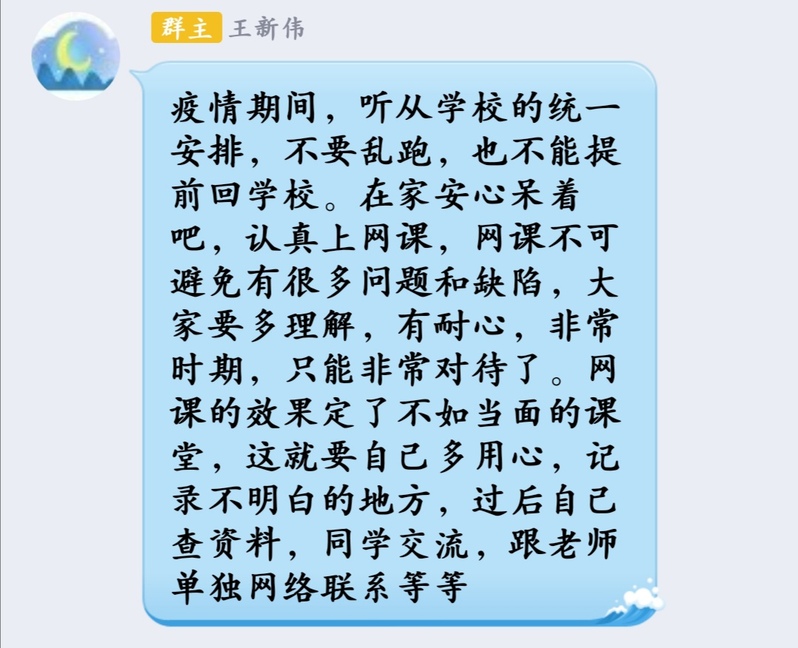 本次班会落实了现阶段班级的工作方向,向学生讲明了疫情汇报的重要性,从思想上引起学生的重视,同时指出了学生在家复学期间需关注的注意事项,为顺利开学做好充分准备。