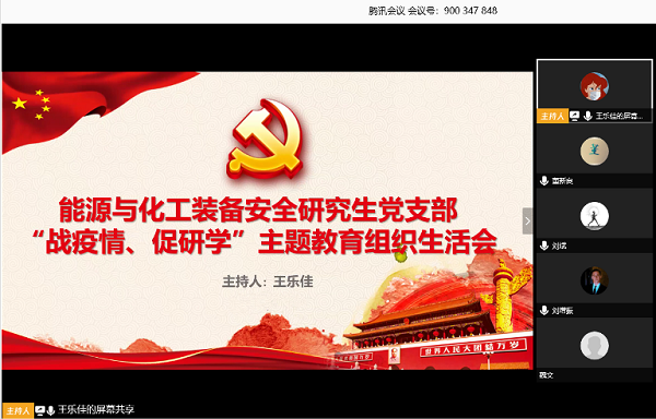 疫情当前,为继续深化“不忘初心、牢记使命”主题教育成效,发挥党支部成员在防控疫情中的模范带头作用,3月23日,太阳集团城娱8722能源与化工装备安全研究生党支部利用网络线上电话会议的形式召开组织生活会,分享疫情期间个人规划和假期学习及疫情防控心得。会议由党支部书记王乐佳主持,25名党员参与此次会议。
