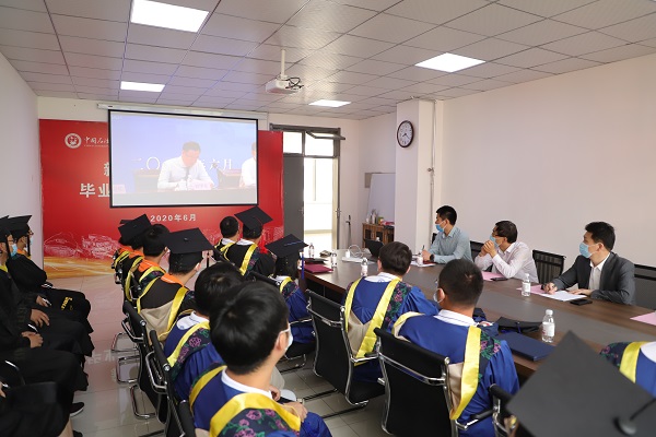 首先,参会人员一同观看了学校2020年毕业典礼线上直播。郝芳校长发表了题为《做值得尊敬的石大人》的讲话,他用“关爱与遗憾”“坚守与奉献”“机遇与挑战”三组词谈了自己对这个特殊毕业季的感受。郝芳表示,党和国家以人民为本,不惜一切代价,迅速扭转了疫情局势,彰显了社会主义制度优越性,体现了党和国家对人民的大爱,学校和老师们也始终在以各种方式关爱同学们。随后,郝芳对毕业生提出四点殷切期待和美好希望,鼓励他们“做值得尊敬的石大人”。在学院分会场现场的师生代表们反响剧烈,不时发出阵阵掌声。