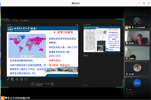 最后哈工大王富强书记对本次活动进行总结,结合微党课的感受,对党员同志提出要求:面对疫情,响应号召,严格要求,保证在线教学质量;主动适应,迎难而上,勇于在新环境下探索新教学模式;各个部门,通力协作,保障在线教学顺利进行。