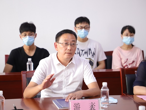 冯宝鹏首先对游袤一行的到来表示欢迎,他说,年初疫情肆虐,学院通过湖北藉学生了解到监利市疫情后,迅速号召全院师生自愿捐款,定点向监利市人民医院捐赠资金5万余元,他指出,疫情面前我们中华儿女是心连心的命运共同体,只有团结一致,互帮互助,方能撼天动地,战胜病魔,他高度称赞监利市本次抗“疫”期间取得的成果,希望双方能够建立长久联系纽带。