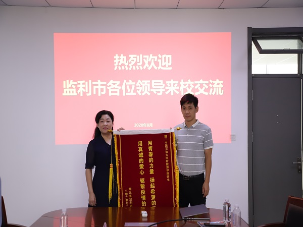 游袤副市长代表监利市防控指挥部向学院赠送锦旗