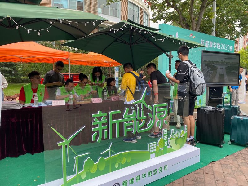 学院迎新点设置在荟萃餐厅西南角,用绿毯铺就,并布置了“网红帐篷”、“定制祝福”、“起航签名墙”“3D模型”等装饰,营造温馨的“家氛围”和“能源感”,缓解了新生疲惫的状态和紧张的心情。新生报到时可在新生签名墙进行签名活动,再依次完成资格审查、领取一卡通、领取相关纸质材料、领取定制可乐等环节。学院领导、新生班导师同迎新志愿者均在迎新工作现场,一起为前来报道的新生答疑解惑。迎新工作现场,循环播放学院迎新MV。除此之外,学院在迎新点和宿舍楼分别悬挂了欢迎条幅,热烈欢迎新生加入到太阳集团城娱8722大家庭。