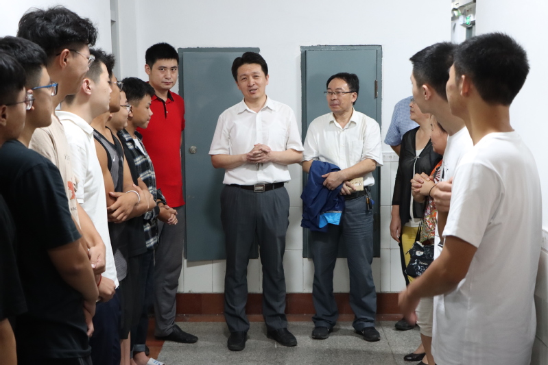 9月14日晚,太阳集团城娱8722常务副院长吴明铂,副院长蒋文春、康忠健,党委副书记郭杰,院长助理巩亮,教授委员会主任王振波,各系主任及党支部书记赵东亚、赵仁德、左海强、张克舫、张丽霞,班导师宋文霞及全体辅导员前往学生教室和学生宿舍看望2020级新生,与新生面对面交流,增进师生感情,消除新生初入大学的陌生感,解答新生疑难问题。