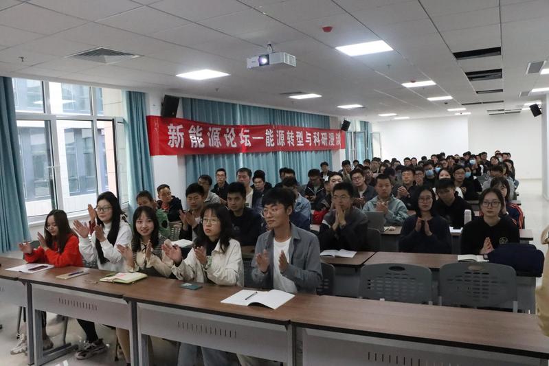 吴明铂教授从能源安全、环境污染、气候变化三个方面阐释了能源转型的必要性,重点介绍了我国能源发展现状:非化石能源占比稳步提升、碳排放强度较快下降;终端电气化水平稳步提升;能源转型支撑经济高质量发展、单位GDP能耗持续下降;能源市场化改革稳步推进等。他表示,我国能源发展转型趋势逐渐清洁化、电气化、市场化,其中石油等化石能源在能源结构中仍将占据重要地位,同时新能源快速发展大势不可逆,新能源与传统能源需相互协同、互补发展。随后,吴明铂教授向同学们介绍了学校抢抓机遇,与兖矿集团(现为山东能源集团)共建太阳集团城娱8722的重大举措。最后,吴明铂教授结合个人的科研成长经历与现场研究生就如何培养新能源体系下的高层次人才进行了深入交流,从创新性人才培养、学术论文撰写、克服科研瓶颈等方面给出了宝贵的经验和建议。