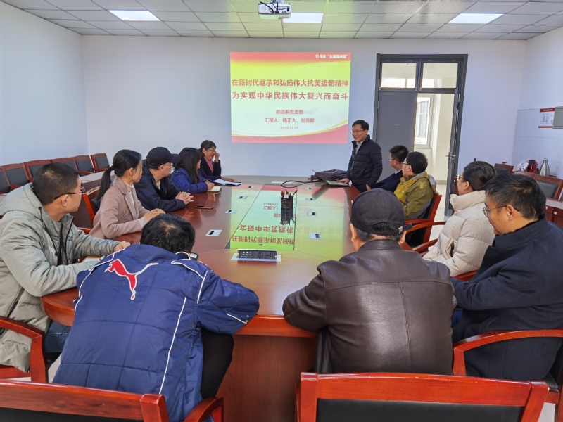 2020年11月26日,能动教师党支部在特种楼C431会议室进行“在新时代继承和弘扬伟大抗美援朝精神”主题党日活动,由杨正大和张克舫认领本次组织生活,能动教师党支部无课党员参加了会议。