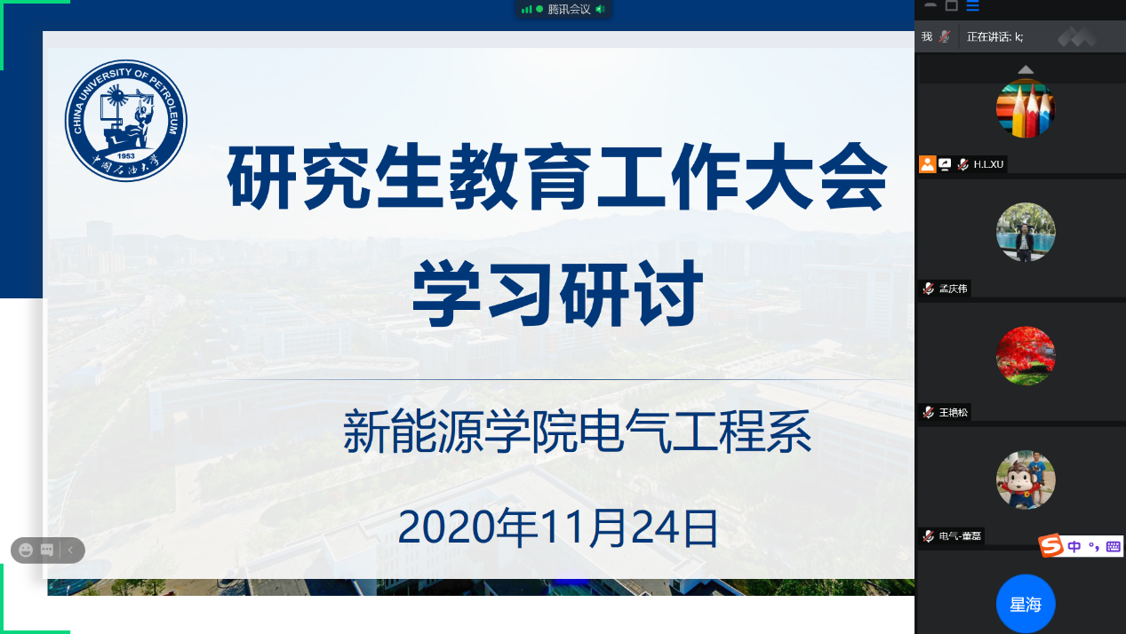 11月24日,电气工程系在线会议,传达学校研究生教学工作大会文件精神,并组织学习研讨。电气工程系16位导师参加会议,会议由电气工程系副主任徐海亮主持。