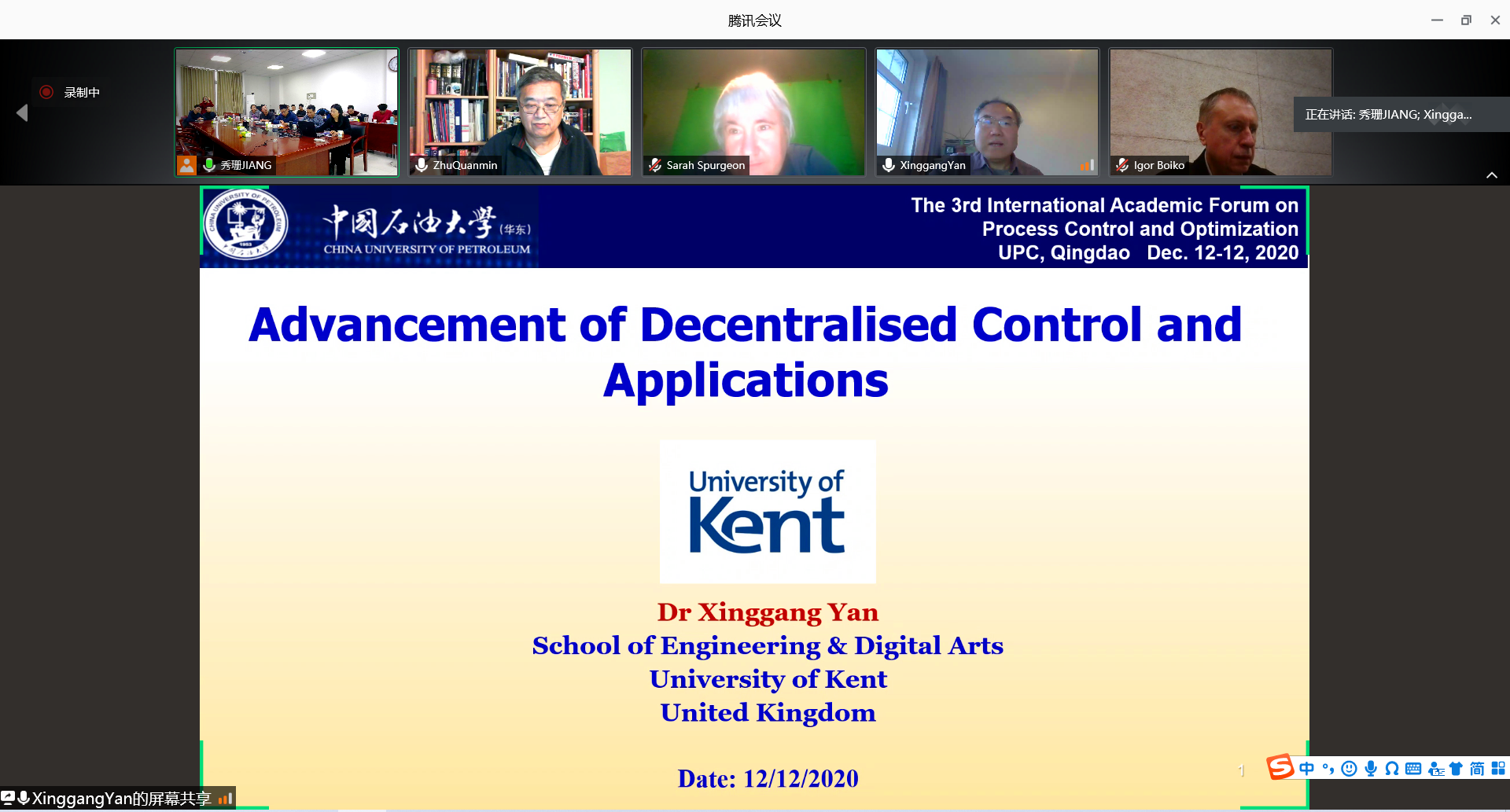 2020年12月12日至13日,第三届国际过程控制与优化学术前沿论坛(线上线下会议)在王宽诚教育基金会资助下成功举办。会议由太阳集团网站8722太阳集团城娱8722主办,来自国内外知名专家学者针对大规模复杂过程中所存在的基础理论控制问题,探讨现有的分布式滑模控制、鲁棒控制以及大规模复杂系统的动态优化等理论。