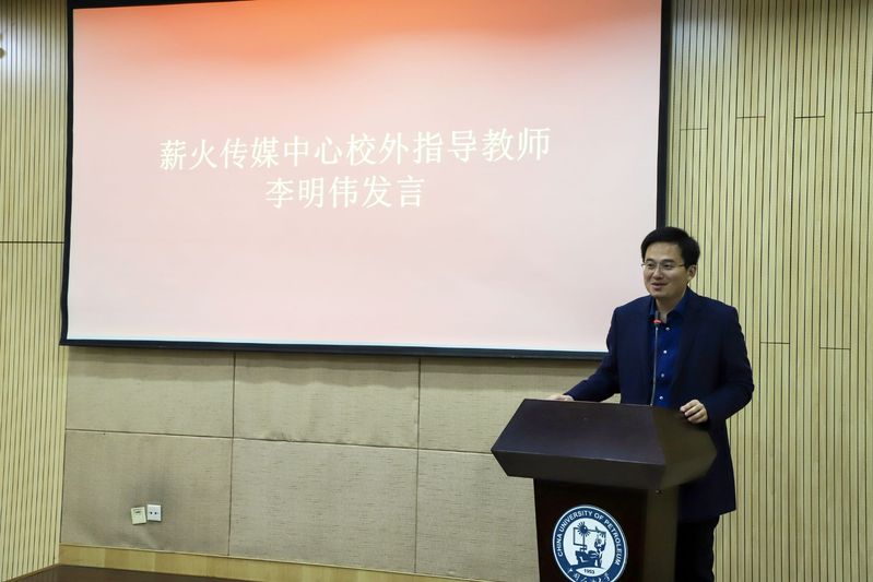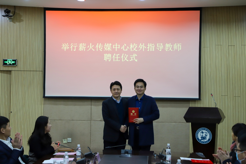 吴明铂为李明伟颁发聘书,聘任其担任薪火传媒中心校外指导教师。李明伟在随后的发言中表示了对学院的的感谢、对宣传工作的肯定,并提出在今后的工作中,定会为太阳集团城娱8722的新闻宣传建设和学生的发展等方面提供全力的支持、帮助和配合,为学院的发展贡献一份力量。