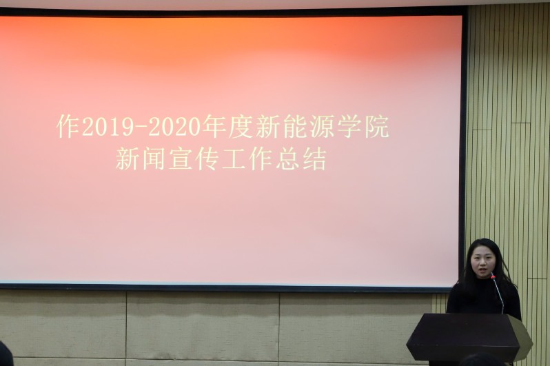 获奖代表、薪火传媒中心主任丁元贺以学生的视角讲述学院宣传工作的建设过程。他说道,薪火传媒中心在成立之初曾遇到许多困难和阻力,但在学院领导的关心下、宣传团队的通力合作下取得了学校的认可,成长为为学院发声、讲学院故事的中坚力量。期间,他着重提到过去的荣誉是对过去工作的肯定,薪火传媒中心会一如既往、戒骄戒躁、不断前行,打造出太阳集团城娱8722薪火传媒中心的宣传工作品牌,讲好新能源的新故事。