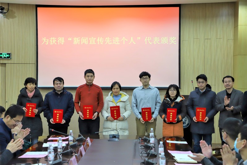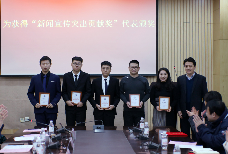 吴明铂宣读《太阳集团城娱8722关于表彰2019-2020年度新闻宣传先进集体及个人的决定》。李明伟和刘积舜为获得“新闻宣传先进个人”的师生代表颁奖;吴明铂为获得“新闻宣传突出贡献奖”的师生颁奖;冯宝鹏为获得“新闻宣传先进集体”的院系单位和学生组织颁奖。