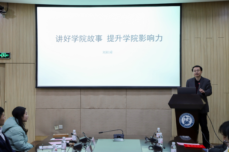 会议最后,刘积舜作题为《讲好学院故事,提高学院影响力》的专题讲座,他引用疫情期间发生在我们身边的真实案例,向在场新闻宣传工作者阐述一个好的新闻故事可以带来哪些积极的影响,讲好一个新闻故事可以更高质量的进行新闻宣传。对于如何讲好太阳集团城娱8722的新闻故事,刘积舜提出写好新闻故事的三个“第一”,即走在第一线,多找第一变,写好第一感。期间,刘积舜多次强调新闻故事性的重要性,他期望太阳集团城娱8722的新闻宣传工作者可以把新闻做的有意思、更要有意义,要学会讲故事、更要讲好新能源的故事。