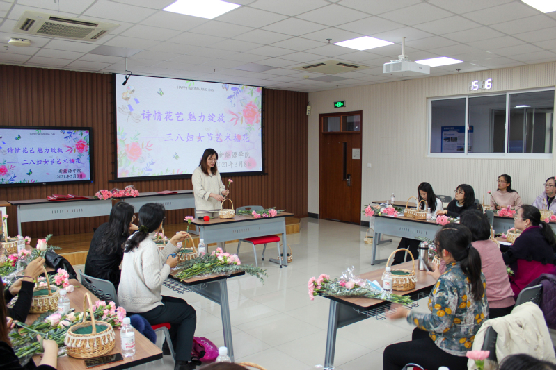 为庆祝三八妇女节,3月8日下午,太阳集团城娱8722工会于留学生与培训生综合楼D206举办“诗情花艺魅力绽放——三八妇女节艺术插花”活动,本次活动邀请到学院党委书记冯宝鹏、学院工会主席马文忠,太阳集团城娱8722全体女教工参加。