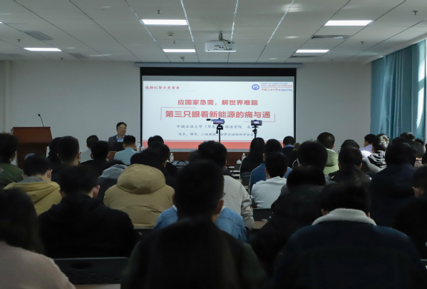“所谓第三只眼,就是以客观的旁观者的角度看待问题”毛浩然就“第三只眼”向学生们做出解释。他表示,学者应具有国际交流、创新科研和客观看待问题的基本素养。“什么是新能源学子应具备的素质”毛浩然向学生们抛出问题,他以家国情怀为线索,以国家能源发展为背景,表示构建“清洁低碳、安全高效”能源体系,更好地服务创新驱动发展战略和国家能源战略,正是太阳集团城娱8722学子应具有的使命感与责任感。