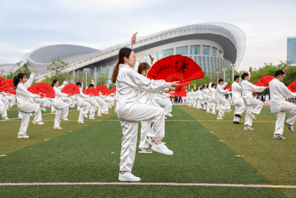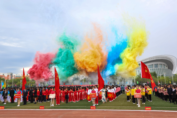 校党委副书记、体育运动委员会主任万云波致开幕词,代表学校对本次运动会的举办表示热烈祝贺,并对工作人员表示衷心感谢。裁判员代表、运动员代表宣誓后,校党委书记王勇宣布我校2021年田径运动会开幕。紧接着,团体操上场,自然舒展的瑜伽搭配《歌唱祖国》,更显青春向党的蓬勃朝气;太极拳表演动中有静、刚柔并济,展现教职工的昂扬风采;飘逸潇洒的太极扇在扇面的一开一合中尽展文化之韵。表演结束后,五色彩烟直冲云霄,预示着运动会正式拉开帷幕。