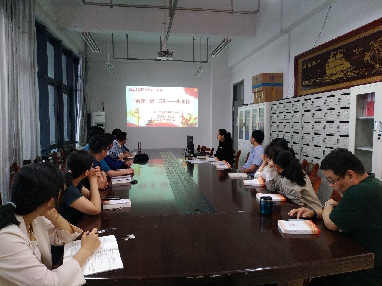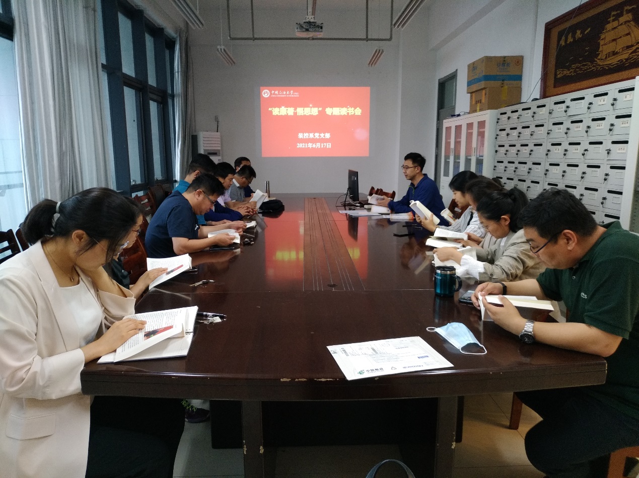 6月17日下午在工科楼E411,装控系党支部开展本学期第十期的党史学习教育,活动由支部书记左海强主持。首先开展了“读原著·悟思想”专题读书会活动,党员依次接力朗读党史学习教育指定教材《中国共产党简史》第十章:中国特色社会主义进入新时代。通过阅读党员同志们回顾了党的十八大、十九大以来在习近平新时代中国特色社会主义思想指引下,全党全国各族人民全面建成小康社会,开启全面建设社会主义现代化国家新征程。