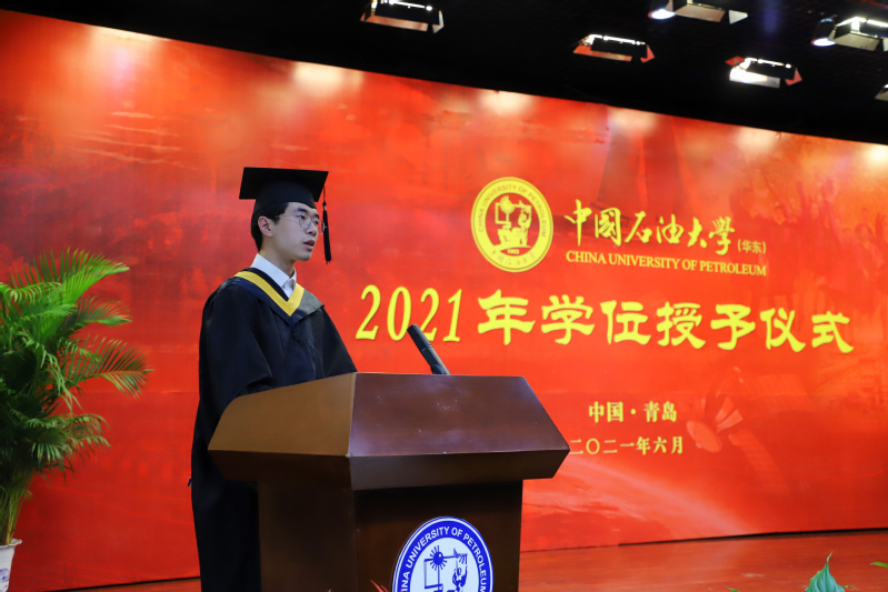 尹宏、董雪梅分别代表2021届本科毕业生以及研究生毕业生上台发言,尹宏表示:“毕业是大学四年的精彩谢幕,更是下一段征程的郑重开始。”希望毕业生们在将来能够带着学院的期望,不忘初心,强国筑梦。“希望各位同学在练就过硬本领的过程中把青春小我融入到国家大我,把理想追求融入到一件件具体的工作中去,在实现中国梦的伟大实践中放飞青春梦想。”董雪梅如是说。