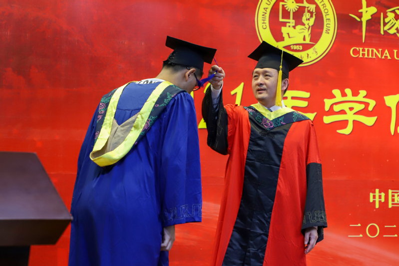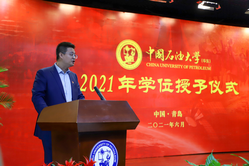 吴明铂上台致辞,在祝福毕业生顺利毕业的同时,希望学生们能“谨遵惟真惟实的校训,无论何时何地,继续继承和发扬家国同心、艰苦奋斗、惟真惟实、追求卓越的石大精神,为实现中华民族伟大复兴的中国梦贡献力量。”并祝福全体毕业生前程似锦,期盼全体毕业生“惟真惟实、立足岗位、认真钻研,做石大精神的代言人;勇于挑战,响应时代的召唤,做勤劳上进的奋斗者。”仪式最后,学院全体领导及教师代表目送毕业生离场,授予仪式圆满结束。