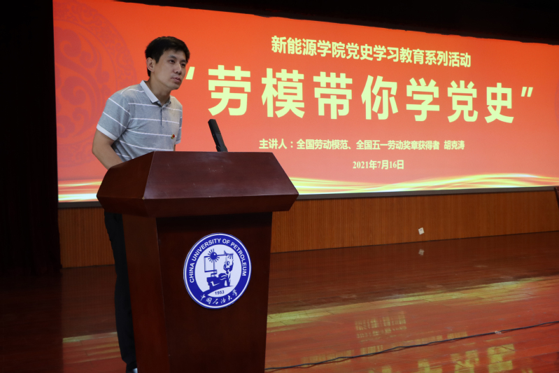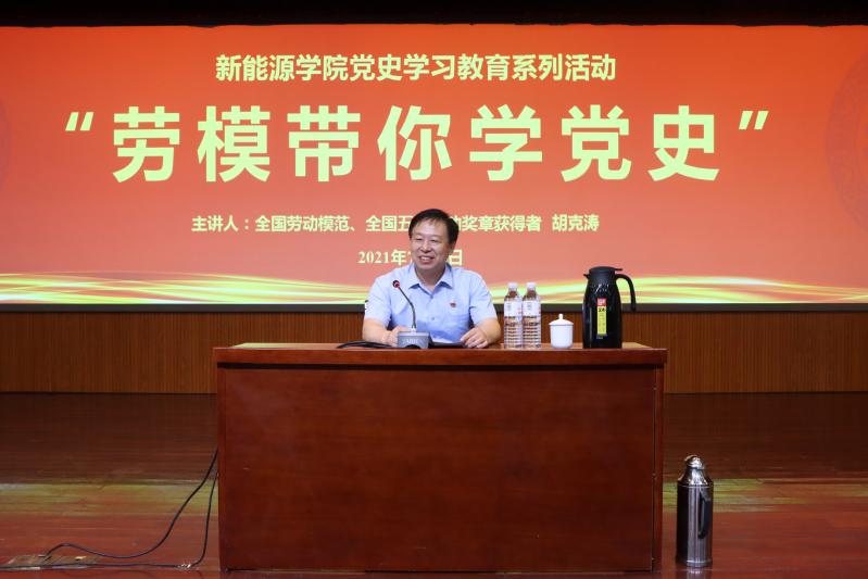 7月16日下午,太阳集团城娱8722于逸夫楼礼堂举办党史学习系列教育——“劳模带你学党史”第二期,本期邀请到全国劳动模范、全国五一劳动奖章获得者(青岛能源集团金莱热电有限公司汽机专工兼检修班长)胡克涛到校作报告。学院学生党总支副书记徐光辉主持活动,学院团委书记穆海涛、全体辅导员以及435名学生参与了此次活动。活动之前,学院党委书记陈灵泉与胡克涛在会议室进行了座谈。
