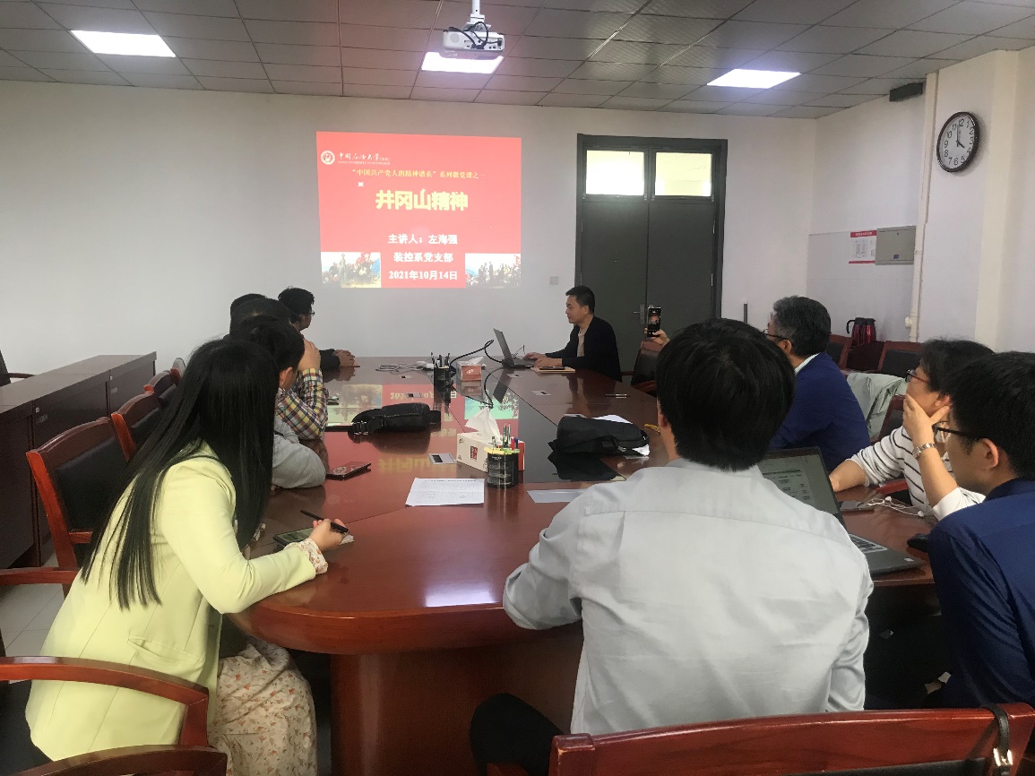1014日下午,装控系党支部在综合楼C433开展了本学期第一期“中国共产党人的精神谱系” 系列微党课学习教育活动,活动由支部书记左海强主持,支部全体党员参加会议