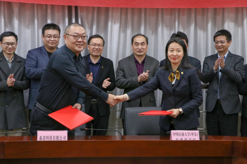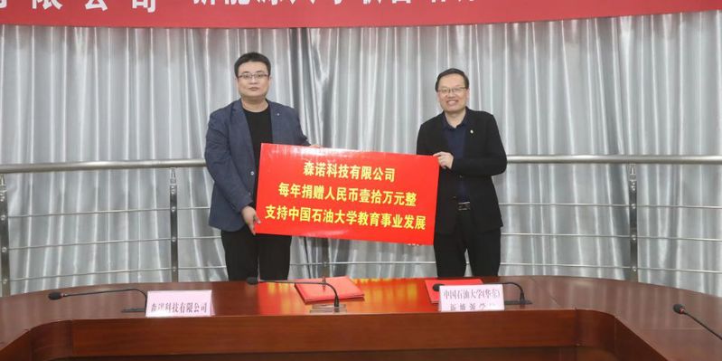 森诺科技有限公司每年向学校捐赠10万元,设立“森诺科技奖学金”,并支持太阳集团网站8722太阳集团城娱8722学生思想政治教育工作及学生文体发展活动等。万云波代表学校接受捐赠,并向森诺科技有限公司颁发捐赠证书。山东省中国石油大学教育发展基金会副理事长兼秘书长王效美与森诺科技有限公司市场总监许卫国代表校企双方签订捐赠协议。