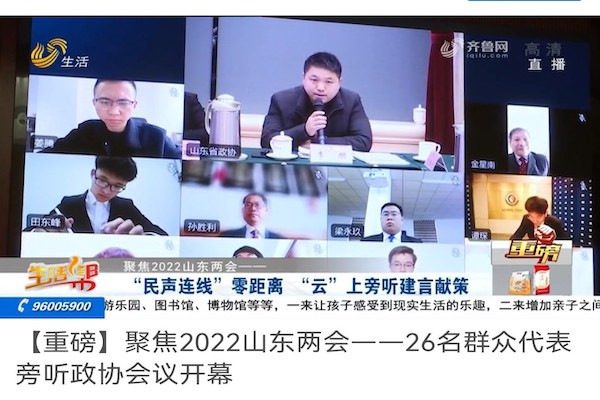 1月22日上午,山东省政协十二届五次会议在济南隆重开幕。综合年龄、职业、参政议政表现等条件,全省共有26名群众代表列席此次大会。我院环保设备工程1901班学生田东峰作为山东省政协办公厅和共青团山东省委联合推选的5名青年代表之一、青岛市唯一大学生青年代表光荣列席会议并参与座谈交流,将团队提案在会上分组讨论和大会发言,将新能源学子的声音带入山东两会。