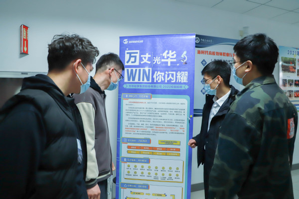 线下宣传展览、线上对话企业、朋辈经验分享……为避免毕业生因线上就业信息冗杂错过目标企业招聘信息,学院开展企业招聘信息推广活动,帮助毕业生了解更多企业招聘情况,更加直观进行企业选择,加强校企联动,共同推进学院就业工作。山东省优秀毕业生、学院2019级动力工程专业硕士研究生王玉杰成功签约万华化学集团。在活动中,他代表万华化学集团向毕业生推广企业文化,传达就业经验:“签约时要综合考虑很多因素,以我自己为例,万华化学集团是很有责任心和使命感的企业,它的企业文化和我的个人信仰也非常吻合,希望在其中实现个人的价值,所以最终综合考虑之后选择了万华。”