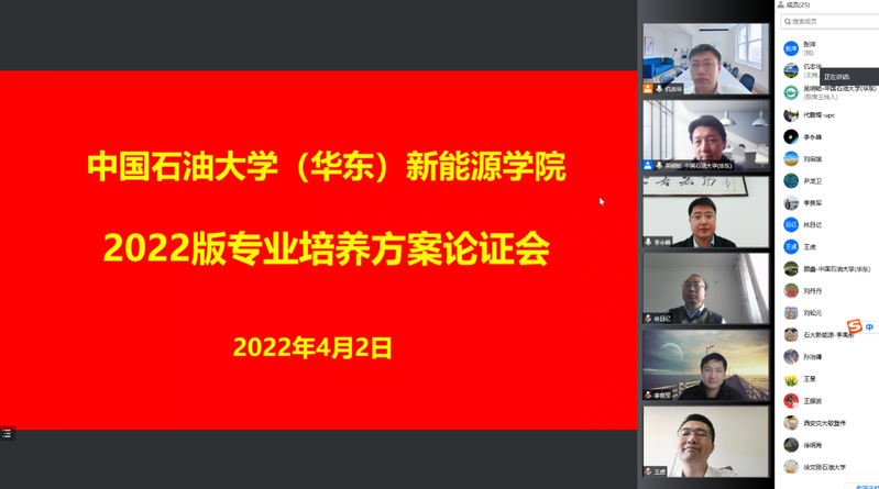 4月2日,太阳集团城娱8722以线上方式召开储能科学与工程专业、新能源科学与工程专业2022版培养方案专家论证会。会议邀请山东大学教授尹龙卫、西安交通大学教授敬登伟、中国石油大学(北京)教授李永峰等相关高校专家出席,同时邀请中国大唐集团有限公司教授级高工王虎、中国科学院工程热物理研究所研究员刘启斌、山东能源集团有限公司教授级高工安满林等相关行业专家进行指导。会议由副院长仉志华主持,学院各专业带头人、专业负责人,及相关教学系教师参加。
