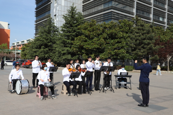 军乐队队长李泳淇说道:“两个月紧锣密鼓的集中排练,从零基础到顺利合奏国歌,军乐队今天正式出道!每个音符吹奏的无数次调整,每个强弱变化的反复考究,为的就是能在升旗仪式上献上最铿锵的军乐之声,来迎接党的二十大,献礼建团百年。”