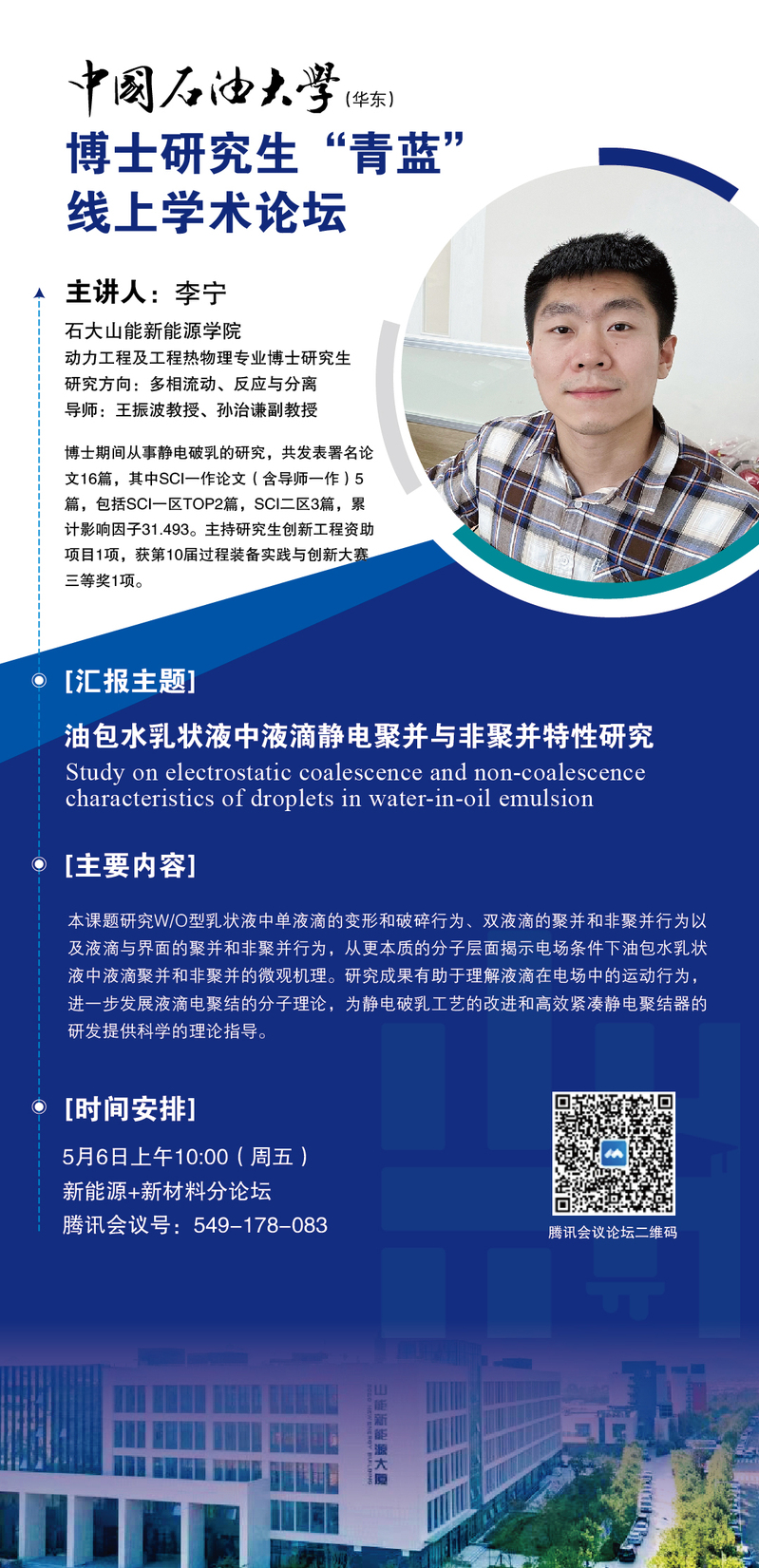 中国石油大学博士研究生“青蓝”线上学术论坛-“新能源+新材料”分论坛-李宁