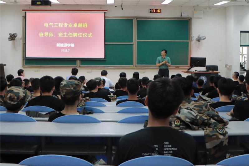 为更好地推进学院卓越班建设,提高人才培养水平,7月1日下午,学院于讲堂群东环201举办2021级电气工程及其自动化卓越班班导师、班主任聘任仪式。学校信息化建设处处长郝志杰,党委办公室、校长办公室副主任朱华,学院常务副院长吴明铂、党委副书记郭杰、专业带头人马文忠,辅导员和全体电气21级学生参加聘任仪式,聘任仪式由电气工程系主任赵仁德主持。