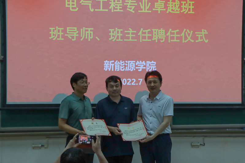 动员讲话结束后,学院领导为卓越班班导师、班主任颁发聘书。聘任马文忠、郝志杰为电气2106(卓越)班导师、班主任,聘任董磊、朱华为电气2107(卓越)班导师、班主任。