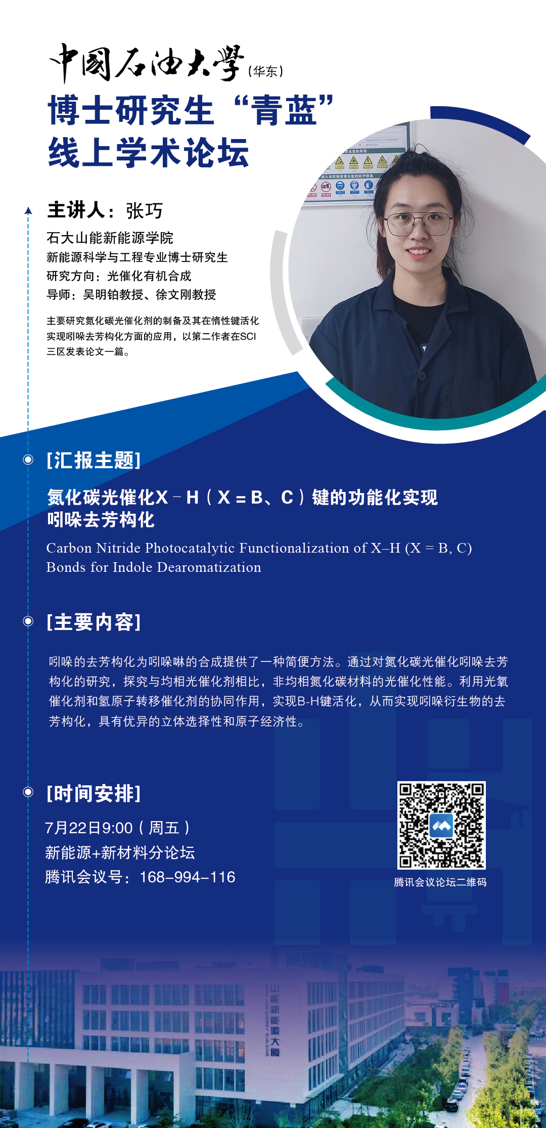 中国石油大学博士研究生“青蓝”线上学术论坛-“新能源+新材料”分论坛-张巧
