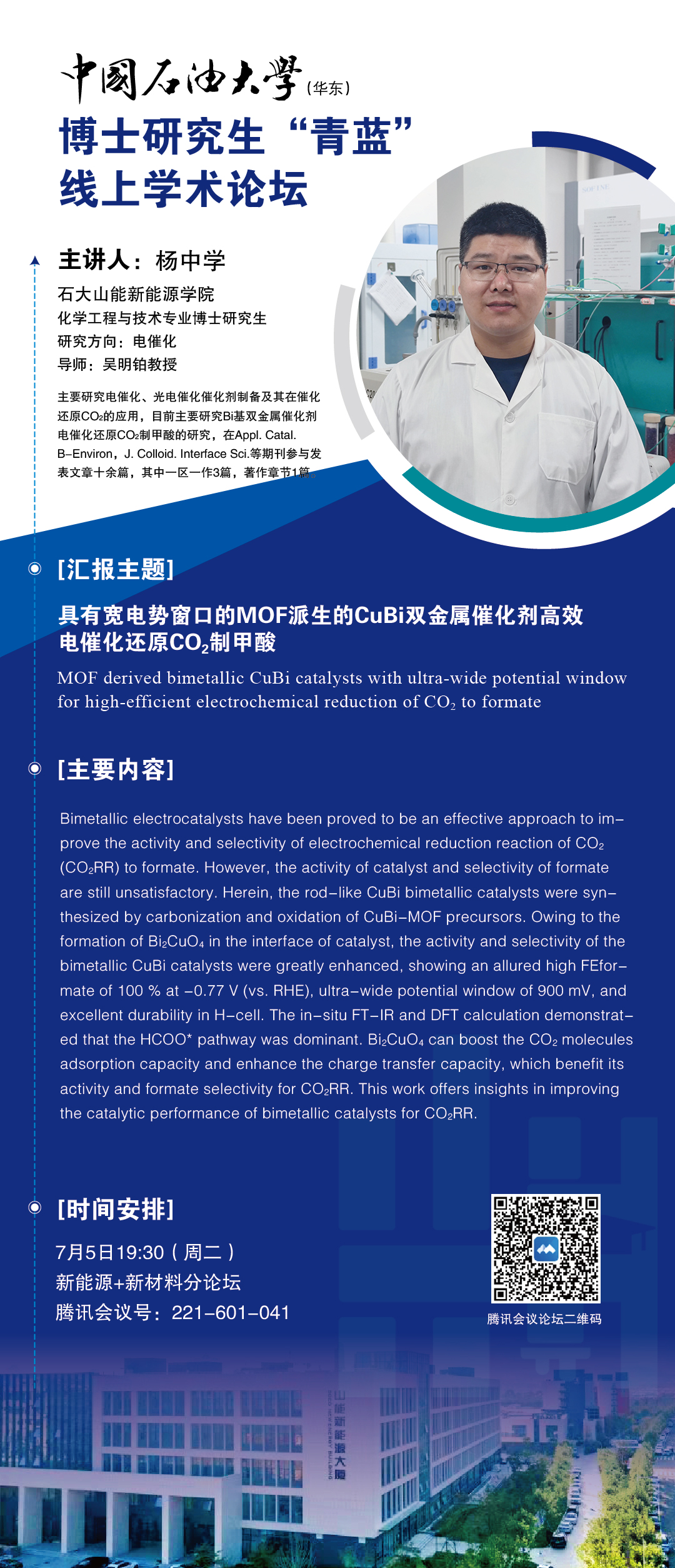 中国石油大学博士研究生“青蓝”线上学术论坛-“新能源+新材料”分论坛-杨中学