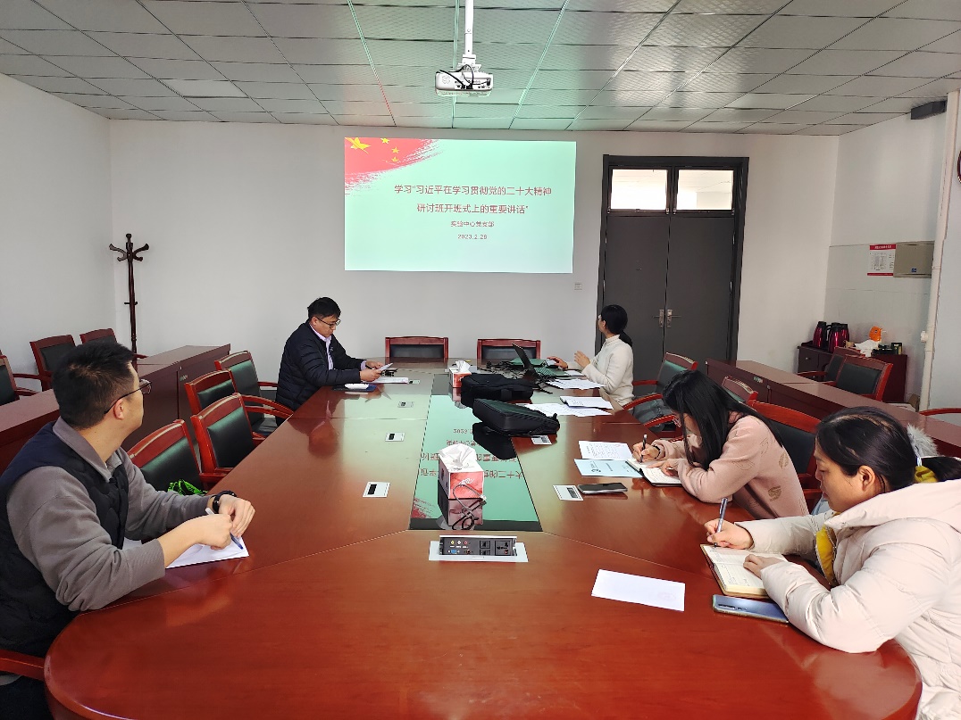 为深入学习贯彻党的二十大精神,把全体党员教师的思想和行动统一到党的二十大精神上来,228日下午,实验教学中心党支部组织学习了“习近平在学习贯彻党的二十大精神研讨班开班仪式上的重要讲话”,会议由支部书记王丽飞主持。