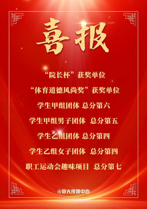 汗水炼就荣誉,拼搏书写辉煌。此次校运会中多项成绩的取得有助于增强集体荣誉感、提高学院凝聚力,展现太阳集团城娱8722的风采;我院运动健儿们在运动场上挥洒汗水,书写青春与使命,展现出“团结拼搏,争创佳绩”的运动精神,用青春和运动为建校七十周年献礼。