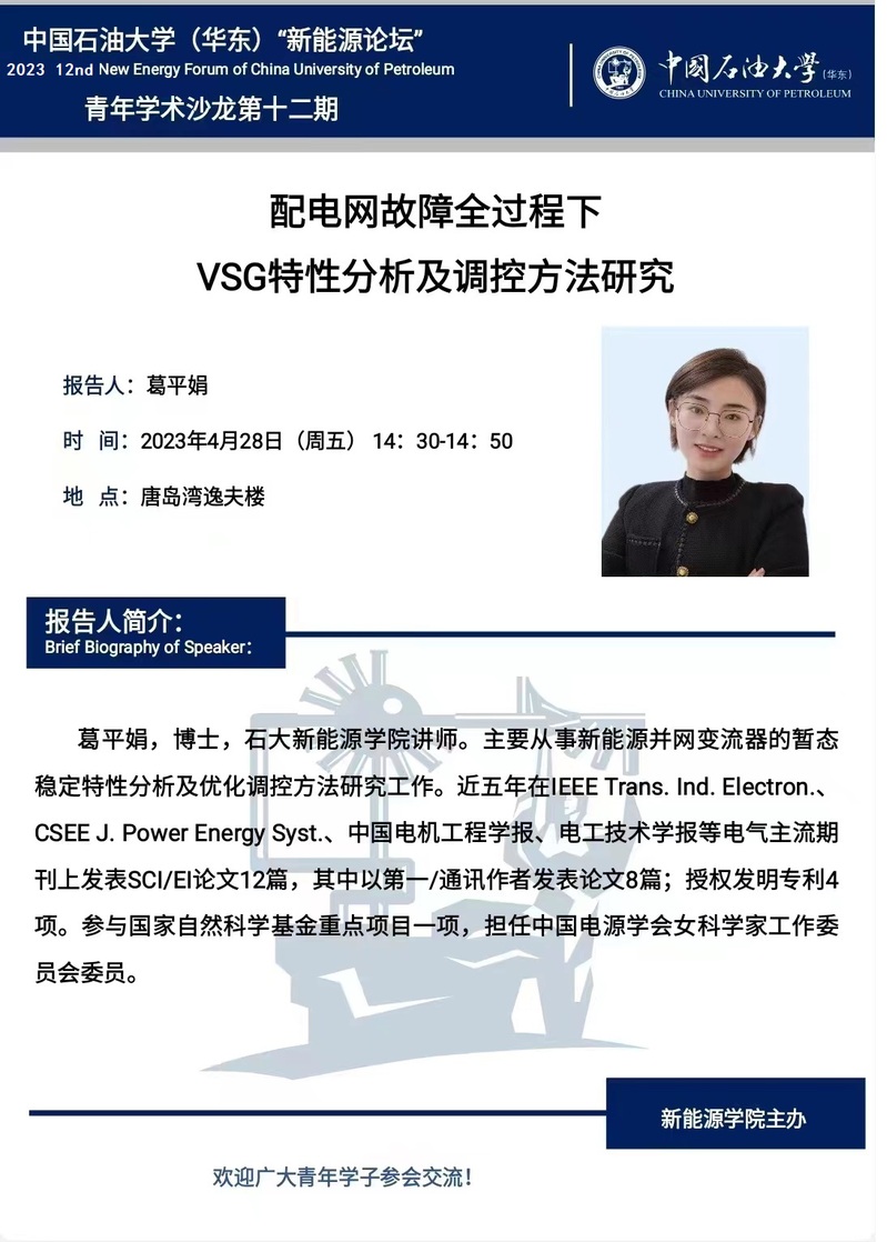 太阳集团网站8722新能源论坛“青年学术沙龙”第十二期通知