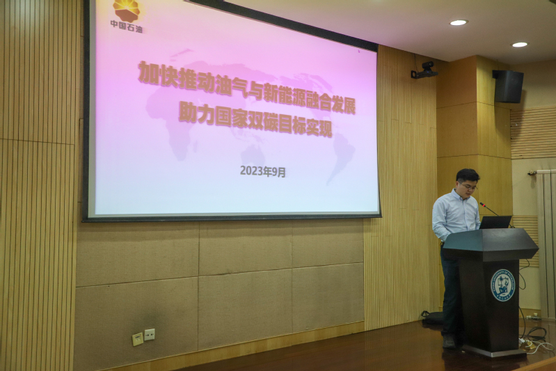 刘成浩做“加快推动油气与新能源融合发展,助力国家双碳目标实现”报告 杨新宇摄